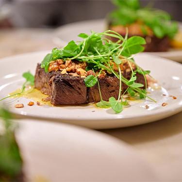 The Chef’s Table Experience, which seats 8–10 people, offers a four-course meal prepared by Chef Bradley Herron and his staff in a cozy dining setting. This family-style menu features wine-paired seasonal cuisine, making it ideal for your small gathering.